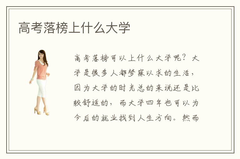 高考落榜可以上什么大学呢?大学是很多人都梦寐以求的生活,因为大学的时光总的来说还是比较舒适的,而大学四年也可以为今后的就业找到人生方向。然而要想顺利进行大学时光,高中三年是必不可少的,然而近几年高考失利的消息是越来越多,看来对话高三考生来说压力还是很大的。那么,高考落榜可以上什么大学呢?其实高考落榜还是可以通过努力上大学的,现在有一种成人高考的模式。