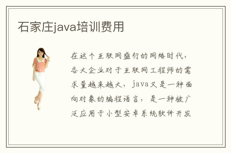 在这个互联网盛行的网络时代,各大企业对于互联网工程师的需求量越来越大,java又是一种面向对象的编程语言,是一种被广泛应用于小型安卓系统软件开发编程以及企业web网站设计等方面,成为了国内外很多编程工作人员最常用的方式。但是java的学习并非一朝一夕就能完成,是一个漫长枯燥的过程。真正想要学好java,进入专业的java培训机构是很正确的方式。那么,石家庄java培训java培训费用是多少呢?