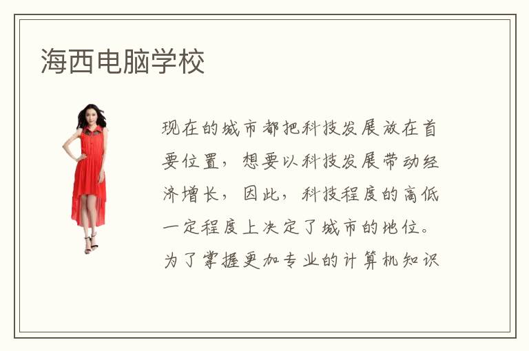海西是哪里?海西电脑培训班地理位置是哪里的?海西电脑学校目前而言的发展情况怎么样?海西电脑培训班培训周期是多久呢?海西电脑培训中心哪家专业呢?这些问题,是当我们想要选择一家电脑培训学校时应该予以考虑到的。海西电脑培训中心有优质的培训教学力量,帮助学生解决计算机难题不在话下,其先进的教学设备也是十分吸引学生进入学习的。