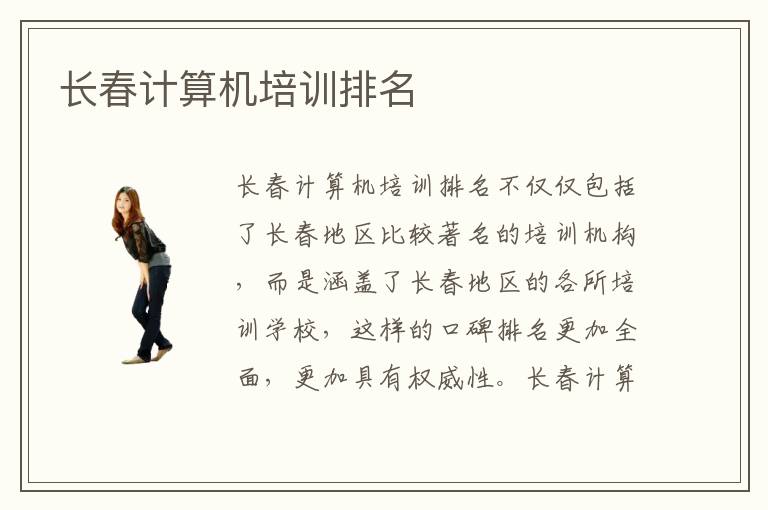 长春计算机培训计算机培训排名不仅仅包括了长春地区比较著名的培训机构,而是涵盖了长春地区的各所培训学校,这样的口碑排名更加全面,更加具有权威性。长春计算机培训课程大纲有哪些?长春计算机培训学校根据这几年的就业热度,选择一些热门专业作为其招牌专业培训,为学生打造了优质的就业前景。长春计算机行业发展近况如何?计算机行业的发展空间大不大?