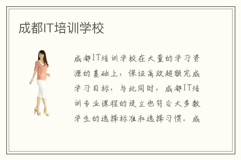 成都IT培训学校在大量的学习资源的基础上,保证高效超额完成学习目标,与此同时,成都IT培训专业课程的设立也符合大多数学生的选择标准和选择习惯。成都IT培训学校培训效果比较突出,各方面迎合了大部分人的要求。成都IT培训学校设立的专业课程也很有鲜明的特色和专业的技术含量。成都IT培训教师资历高不高?成都IT教育培训学校培训内容全面嘛?
