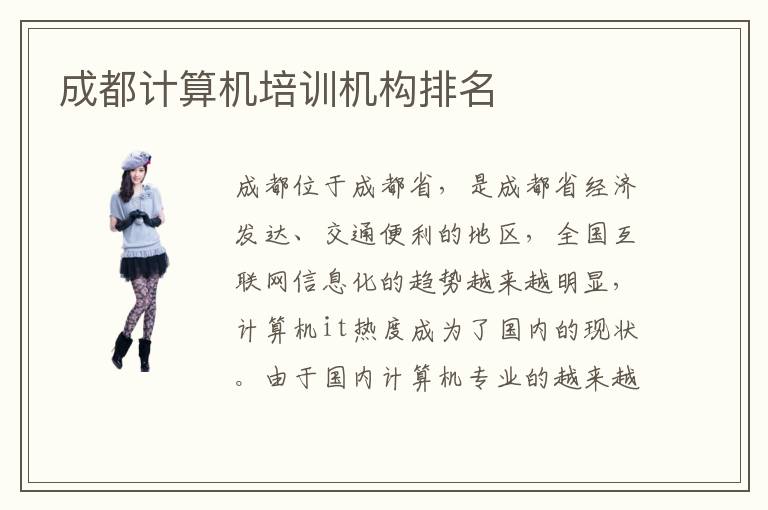 信息化的发展是国家的大势所向,国内的计算机市场对于计算机专业人才的需求量,仍然存在着很大的缺口。然而并不是所有学习计算机专业的学生都可以找到一份满意的工作,要想在计算机行业找到一份待遇优厚的工作,不断提升自身的it技术能力,是最关键的一个地方。进入专业的计算机培训机构接受教育,可以用最高效率的方式提升能力,成都计算机培训机构排名你知道吗?