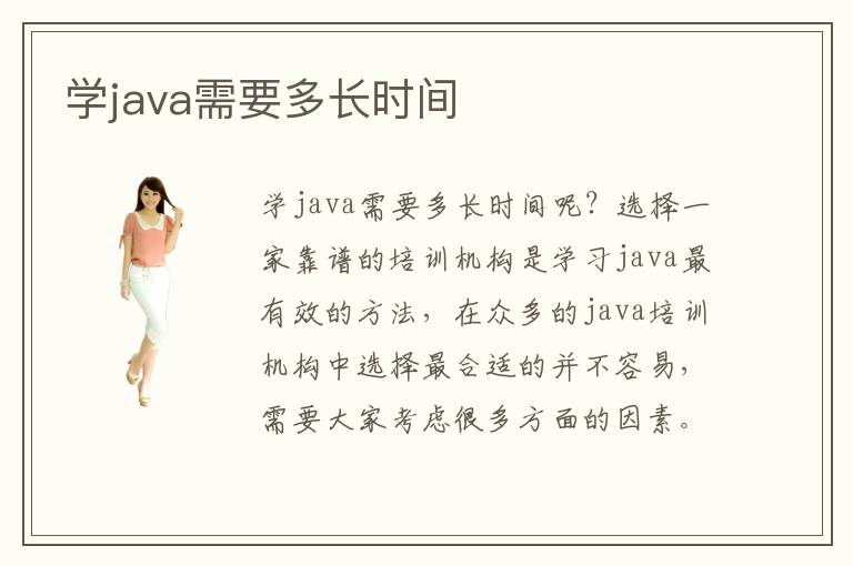 学java需要多长时间呢?选择一家靠谱的培训机构是学习java最有效的方法,在众多的java培训机构中选择最合适的并不容易,需要大家考虑很多方面的因素。一般的培训机构通常会为学员开设四个月左右的课程,针对学员基础的不同,分别开设java基础培训班和java提升培训班,帮助学员正确定位自己。而自学则需要耗费很长的时间,一年甚至是几年都有可能。