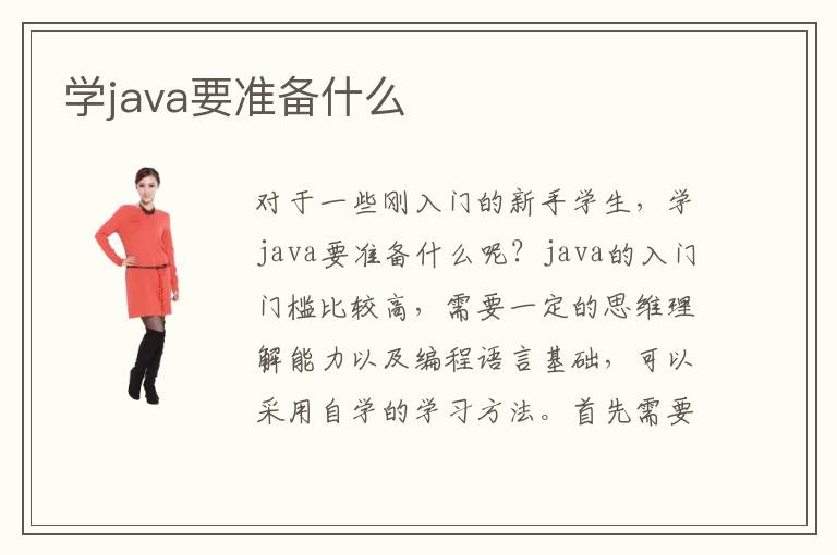 对于一些刚入门的新手学生,学java要准备什么呢?java的入门门槛比较高,需要一定的思维理解能力以及编程语言基础,可以采用自学的学习方法。首先需要去网上搜索一些java的入门视频来学习,了解java的基础语法以及常用的编辑工具。其次再去找一些java相关的书籍资料来学习,从基础的到高级的,由浅入深的学习。最后可以尝试一些小应用的编程设计。