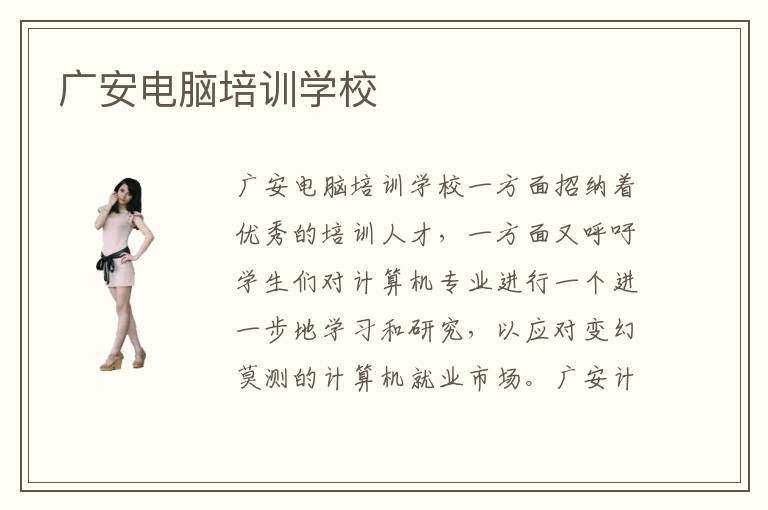 广安电脑培训学校一般会让学生首先对自己的计算机水平有所了解,知道自己的真实情况,才能够对自己的未来学习能力更有把握。广安计算机网络技术培训内容怎么样?广安计算机培训学校的教育培训内容涉及到计算机专业的方方面面,学生们的学习的状态要保证长期在线。广安电脑培训中心口碑情况好不好?广安计算机培训中心的培训情况好不好呢?