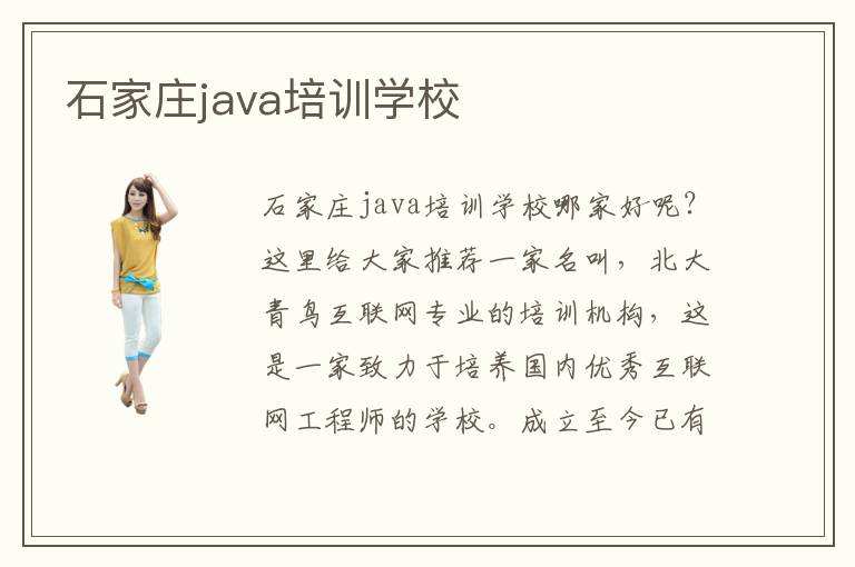 石家庄java培训java培训学校哪家好呢?这里给大家推荐一家名叫,北大青鸟互联网专业的培训机构,这是一家致力于培养国内优秀互联网工程师的学校。成立至今已有好多年了,在国内各大地区都开设了授权的分校区,是国内一流的教育品牌机构。开设了丰富的培训课程,包括java编程语言以及html5设计等等,秉承着“用良心做教育”的先进理念,帮助很多学员完成成为一名优秀java程序员的梦想。