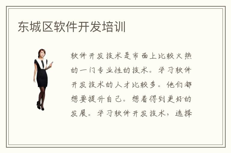 软件开发技术是市面上比较火热的一门专业性的技术。学习软件开发技术的人才比较多。他们都想要提升自己。想着得到更好的发展。学习软件开发技术,选择东城区软件开发培训机构学习,是比较快速的方法。想要很好的掌握软件开发技术,就得到东城区软件开发培训机构里面学习。东城区软件开发培训机构非常有教学资质。他们建立之初就是为了培养人才。许许多多的,在东城区软件开发培训学习过的人,都学到了非常专业的相关软件开发方面的知识。所以选择到东城区软件开发培训机构学习,完全可以放心,一定能学到非常多的关于软件开发方面的,专业技术。很多在东城区软件开发培训机构里学习的学员,都说,东城区软件开发培训机构非常的好。在这里学习完全可以放心。