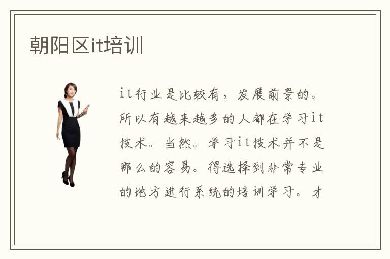 it行业是比较有,发展前景的。所以有越来越多的人都在学习it技术。当然。学习it技术并不是那么的容易。得选择到非常专业的地方进行系统的培训学习。才可以完全学会it专业性技术。朝阳区it培训it培训班。就都是一些非常专业的培训班。而且有着非常,丰富的经验。朝阳区it培训班里面的教学设施非常的先进。所以在朝阳区it培训班学习的话,完全不用担心,一定可以学到专业知识。所以许多想要学习it技术的人员,都选择到朝阳区it培训班学习。每年在朝阳区it培训班学习过的学员,都找到了自己理想的工作岗位。所以有越来越多的人都选择到朝阳区it培训班学习。在这里,他们都完全的学会了非常多的关于it行业的知识。朝阳区it培训班,非常的值得信赖。