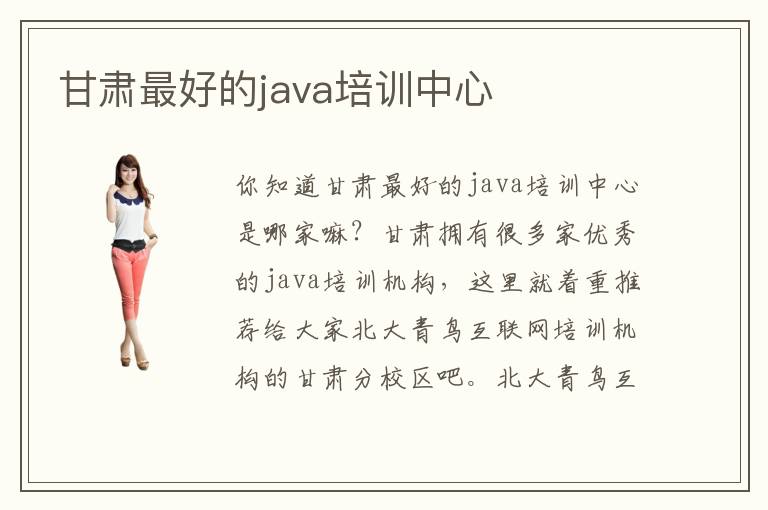 你知道甘肃最好的java培训中心是哪家嘛?甘肃拥有很多家优秀的java培训机构,这里就着重推荐给大家北大青鸟互联网培训机构的甘肃分校区吧。北大青鸟互联网培训学校总部成立在北京,由于互联网的不断盛行,开设了java编程以及html等专业课程,良好的口碑让它在国内各地都先后开设了授权的分机构,方便越来越多不同地区的学员报名学习,并推出了免费试学一周的课程,提前为大家打开java的大门。