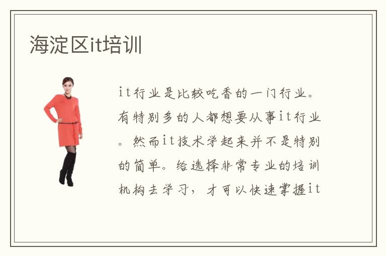 it行业是比较吃香的一门行业。有特别多的人都想要从事it行业。然而it技术学起来并不是特别的简单。给选择非常专业的培训机构去学习,才可以快速掌握it技术。海淀区it培训it培训机构就都是比较专业的培训机构。很多在海淀区it培训机构培训过的学员都说海淀区it培训机构非常的好。特别值得去信赖。而且在海淀区it培训机构完全可以放心,一定能学到专业的知识。随着社会的发展,竞争力越来越大。想要更好的选择到自己理想的工作岗位,就得掌握到专业的技术。而在海淀区it培训机构学习是比较快速的方法。所以有越来越多的人都在海淀区it培训机构学习it技术。在海淀区it培训机构真的可以学到非常多的关于it方面的知识。这一点完全可以放心。