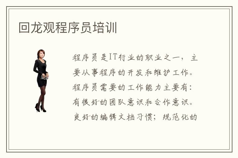 程序员是IT行业的职业之一,主要从事程序的开发和维护工作。程序员需要的工作能力主要有:有很好的团队意识和合作意识。良好的编辑文档习惯;规范化的编写代码习惯,测试软件的能力和习惯,经常性的自我反省和学习总结能力,时刻保持新鲜感和好奇心。可以说,程序员不仅仅是一个技术层面的活儿,还需要很多的能力的结合才可以有好的程序开发成果。回龙观程序员培训正是培养优秀程序员的地方,这些回龙观程序员培训机构具体有:北大青鸟,北京积云教育,中软卓越。这几所回龙观程序员培训机构教学目标就是培养能力和职业素养出色的程序员。当下回龙观程序员薪资待遇还是非常不错的,因为在北京,所以薪资在原本的基础上,还会再高一些,大致在10-20k之间。