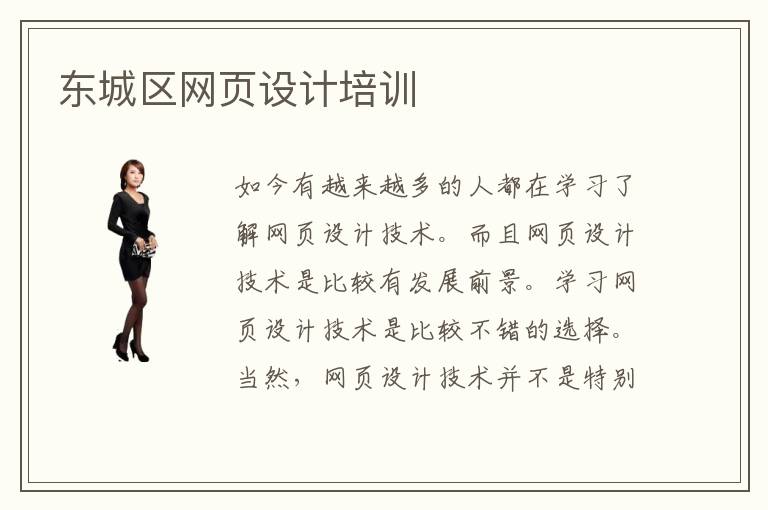 如今有越来越多的人都在学习了解网页设计技术。而且网页设计技术是比较有发展前景。学习网页设计技术是比较不错的选择。当然,网页设计技术并不是特别容易就能学会的。首先你得报一些比较专业的网页设计培训设计培训班。这样才可以学到关于网页设计方面的专业性的知识。东城区网页设计培训班,这都是一些比较有专业培训经验的培训班。在东城区网页设计培训班里面学习,可以快速的学会网页设计方面的知识。而且东城区网页设计培训班老师,是专业的。所以在东城区网页设计培训班里面学习,完全可以放心。在东城区网页设计培训班里面,学到的都是专业性的知识。有许多人都在学习网页设计,他们都选择到东城区网页设计培训班学习。因为在东城区网页设计培训班,学到的都是非常多的关于网页设计方面的专业知识。