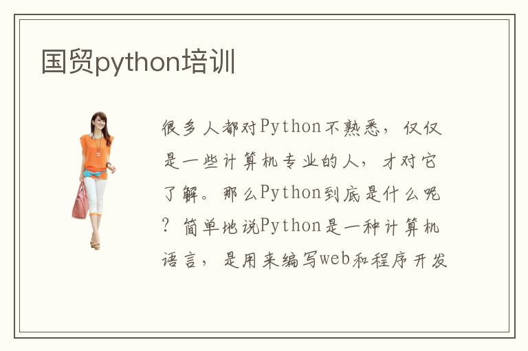 很多人都对Python不熟悉,仅仅是一些计算机专业的人,才对它了解。那么Python到底是什么呢?简单地说Python是一种计算机语言,是用来编写web和程序开发的语言,这种计算机语言的主要特点就是具备灵活性,与一般繁琐难度性高的计算机语言相比,Python更具人性,更好理解。并且这种语言的兼容性也很好,可以与很多计算机语言很好的结合在一起,从而进行功能的实现。国贸Python培训机构正在火热开展,其中比较优秀的国贸Python培训机构有:北大青鸟和中软卓越这两所。许多人就会好奇了,学习国贸Python培训需要学什么内容呢?据了解首先需要学习Python入门,然后是语言编程,最后面是实际项目的运用。
