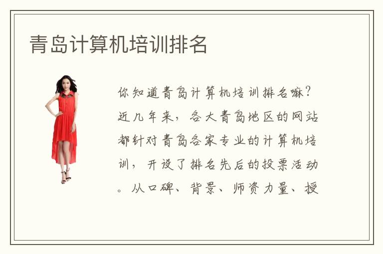 你知道青岛计算机培训计算机培训排名嘛?近几年来,各大青岛地区的网站都针对青岛各家专业的计算机培训,开设了排名先后的投票活动。从口碑、背景、师资力量、授课团队以及学习氛围等各方面来对比、甄选,鼓励大家积极参与投票活动,为各位想要学习计算机专业,却不知道该选择哪所培训机构的学员做做参考。选择靠谱的培训机构可以算得上是人生的一大转折点,因此不容小看。