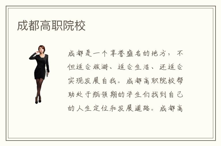 成都是一个享誉盛名的地方,不但适合旅游、适合生活、还适合实现发展自我。成都高职院校帮助处于瓶颈期的学生们找到自己的人生定位和发展道路。成都高职培训机构不仅注重对学生的专业知识的辅导,还教育学生对生活的热爱和对未来的信心。从成都高职学校毕业的学生有前途吗?学生通过在成都高职学校的学习能够掌握一项或者是多项的技能。