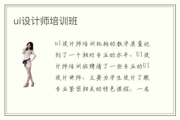 ui设计师培训课程与ui设计师这个岗位职业密切联系,很多的人想要成为一名待遇优、水平高的ui设计师,因此,我们需要不断地丰富自我以展现自身更加壮大的发展空间。ui设计师培训机构设立的课程多样化,涵盖了多方面的知识,同时UI设计师培训课程表也具有灵活性,以便满足学生的作息时间,另外,ui设计师培训班课程也具有阶梯性和层次性。
