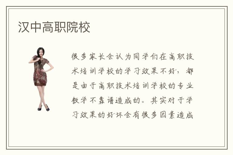 很多家长会认为同学们在高职技术培训学校的学习效果不好,都是由于高职技术培训学校的专业教学不靠谱造成的。其实对于学习效果的好坏会有很多因素造成影响的,而高职技术培训学校的教学质量只是其中一部分。更重要的是看学员们对于专业学习的态度,只有根据汉中高职院校专业化的教学培训才能更快更好的完成相关专业的学习,因此学习效果的好坏不仅仅只是培训机构的问题。