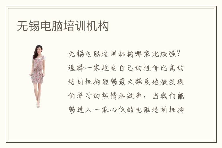 无锡电脑培训机构哪家比较强?选择一家适合自己的性价比高的培训机构能够最大强度地激发我们学习的热情和效率,当我们能够进入一家心仪的电脑培训机构学习相关知识的时候,我们便会带着满腔的热情去学习,对自己的未来就业充满信心。参考无锡电脑培训电脑培训机构排名,再根据相关口碑介绍,我们就大概能进行一个初步筛选。无锡到底哪个电脑培训机构最优秀呢?