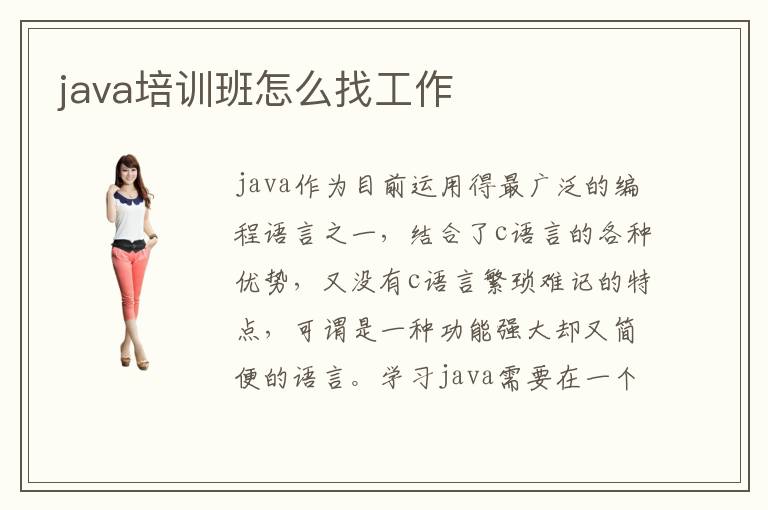 java作为目前运用得最广泛的编程语言之一,结合了c语言的各种优势,又没有c语言繁琐难记的特点,可谓是一种功能强大却又简便的语言。学习java需要在一个有氛围的环境中进行,毕竟互联网专业的学习过程是枯燥无聊的,专业的java培训机构可以满足你的各种要求,专业辅导,帮助你完成高端java软件工程师的梦想。那么,培训班毕业后怎么找工作呢?