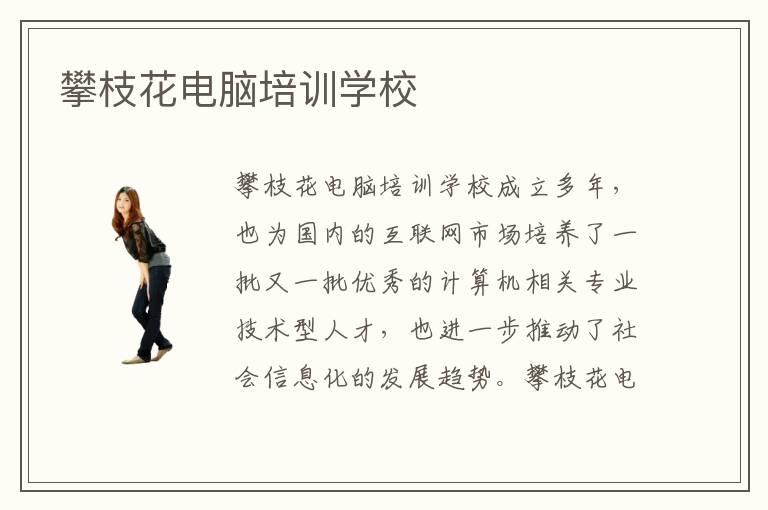 攀枝花电脑培训学校成立多年,也为国内的互联网市场培养了一批又一批优秀的计算机相关专业技术型人才,也进一步推动了社会信息化的发展趋势。攀枝花电脑培训学校拥有权威的师资团队、高水准的教学质量以及与时俱进的培训课程等等优质的教学资源,攀枝花电脑培训学校注重培养学员们的学习兴趣,只有具备了浓厚的学习兴趣才有学习下去的动力,攀枝花电脑培训学校值得大家前来试试看。