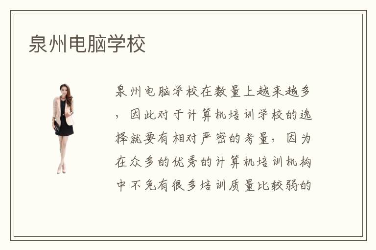 泉州电脑学校有不少的青年学子前来接受培训,因为想要快速高效地提高自身的计算机素养,进入到泉州计算机培训中心去学习锻炼是最佳途径之一。学生们选择泉州众多的计算机培训学校的时候,首先就会根据群众对于泉州电脑培训机构口碑评价来筛选出一部分符合自己心意的学校做进一步探查,在对接下来的泉州计算机培训中心进行各家培训质量比较。