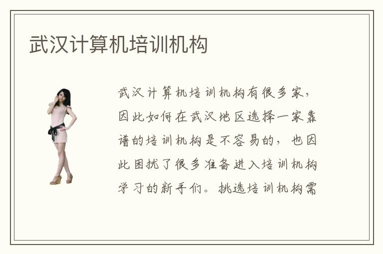 武汉计算机培训计算机培训机构有很多家,因此如何在武汉地区选择一家靠谱的培训机构是不容易的,也因此困扰了很多准备进入培训机构学习的新手们。挑选培训机构需要从口碑到师资力量,进行各个方面的反复比较,首先要了解的是这家培训机构的口碑好不好,口碑可以说是培训机构的招牌,没有好的口碑学员们自然不会想要去学习的。当然就业保障也是很重要的一点,学习专业最根本的原因就是为了解决就业问题。