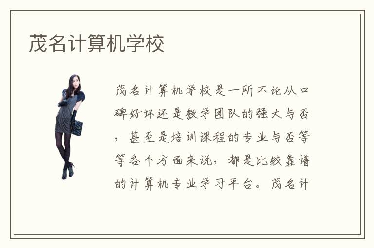 茂名计算机学校是一所不论从口碑好坏还是教学团队的强大与否,甚至是培训课程的专业与否等等各个方面来说,都是比较靠谱的计算机专业学习平台。茂名计算机学校的教学理念很简单,就是不断坚持“以学员们的就业为根本”,并且与一些计算机企业有着项目合作,也通过一些实践项目的参与丰富了专业经验,茂名计算机学校一直在最大程度上给了学员们就业工作的保障。