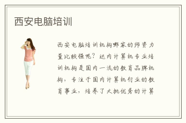 西安电脑培训机构排名情况可以帮助我们对相关的电脑培训机构有初步的了解,在快节奏的时代里生活就需要我们适应快节奏的生活方式,许多机会也稍纵即逝,选择西安电脑培训机构也是一样,优秀的IT培训学校名额有限,需要我们认真仔细辨别,抓住机会去选择。西安电脑培训中心到底是哪家好?接受西安IT培训机构的专业训练有用吗?西安电脑培训机构专业性强嘛?