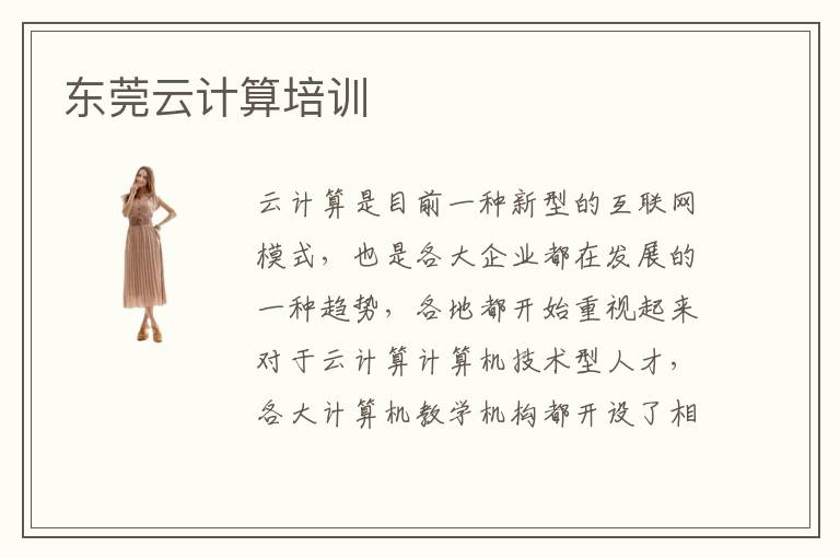 云计算是目前一种新型的互联网模式,也是各大企业都在发展的一种趋势,各地都开始重视起来对于云计算计算机技术型人才,各大计算机教学机构都开设了相应的云计算培训班,那么,东莞云计算培训开设了哪些课程呢?东莞云计算培训的课程第一步就是培训学员们的计算机基础,扎实的基础是学好云计算的根本,第二步就是针对“云计算”这个专业的问题,开设以“云计算”为主的课程。