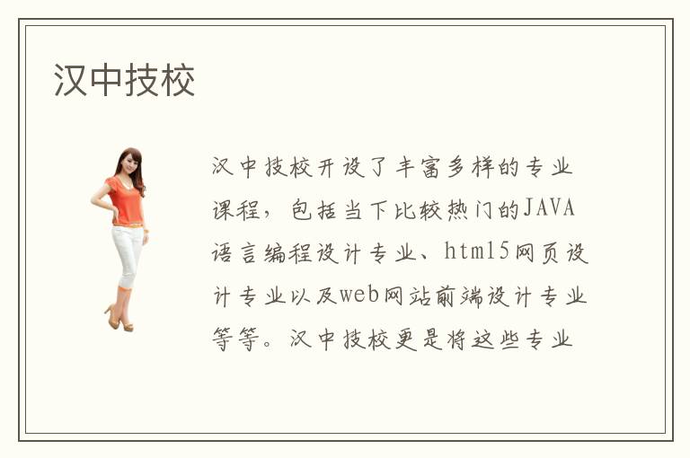 汉中技校开设了丰富多样的专业课程,包括当下比较热门的JAVA语言编程设计专业、html5网页设计专业以及web网站前端设计专业等等。汉中技校更是将这些专业根据就业方向的不同进行不同的分类安排,例如开设了以JAVA语言、数据库开发以及软件开发等为主的计算机编程院校,还有以界面设计、网页设计等为主的美术设计院校,这样的专业分类更方便学生了解自己的就业方向。
