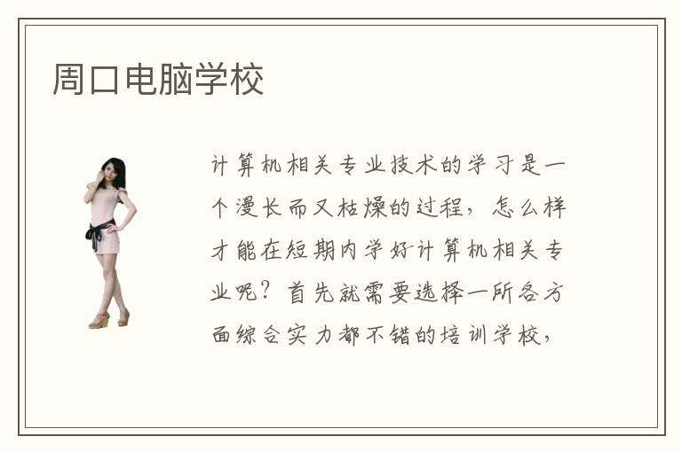 计算机相关专业技术的学习是一个漫长而又枯燥的过程,怎么样才能在短期内学好计算机相关专业呢?首先就需要选择一所各方面综合实力都不错的培训学校,周口电脑学校开设至今多年已经成功培养了很多计算机相关专业的技术型人才,从周口电脑学校毕业的学生不仅拥有高超的计算机专业技术水平,并且具备丰富的计算机项目实践经验,这都是计算机行业中精英人才所必须要具备的。