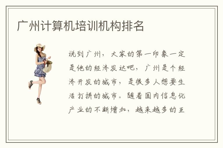 说到广州,大家的第一印象一定是他的经济发达吧,广州是个经济开发的城市,是很多人想要生活打拼的城市。随着国内信息化产业的不断增加,越来越多的互联网机构开始注重计算机专业人才的培养。那么,你知道广州计算机培训计算机培训机构排名吗?近年来,各大网站开始举办了“广州计算机培训机构排名”投票活动,以此来为帮助更多想要学习it技术,却苦于选择的学生提供一个参考。