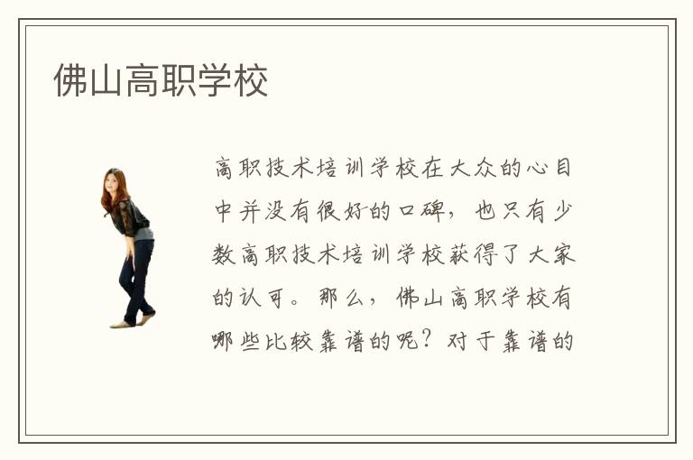 高职技术培训学校在大众的心目中并没有很好的口碑,也只有少数高职技术培训学校获得了大家的认可。那么,佛山高职学校有哪些比较靠谱的呢?对于靠谱的佛山高职学校定义,每个学员需要学习的专业不同、专业技术基础不同以及课程学习的能力也是不同的,要想找到一所适合自己学习的佛山高职学校并不容易,因此每个学生对于靠谱的佛山高职学校评定也是不同的。