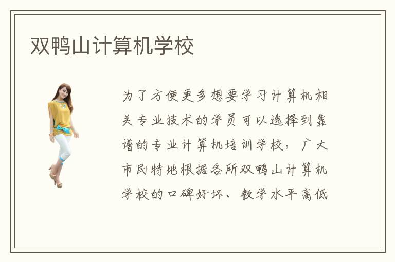 双鸭山计算机学校成立的时间并不长,但是这并不影响双鸭山计算机学校成为大众心目中最值得去学习计算机相关专业技术的平台。双鸭山计算机学校树立了良好的口碑,在各位计算机专业学员以及学员家长们的心目中都是深受信任的。双鸭山计算机学校的周边环境也是不错的,是个比较商业化的地方,也可以便利在双鸭山计算机学校进行专业培训学员们的日常生活,总的来说双鸭山计算机学校是个值得去学习专业的地方。