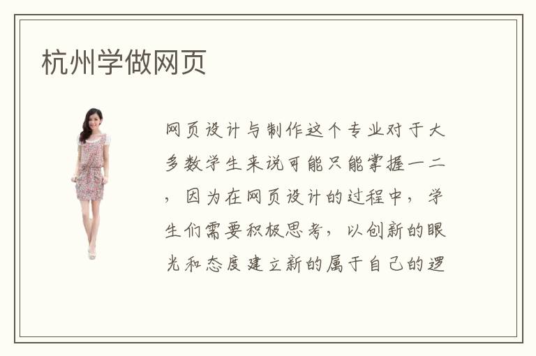 网页设计与制作这个专业对于大多数学生来说可能只能掌握一二,因为在网页设计的过程中,学生们需要积极思考,以创新的眼光和态度建立新的属于自己的逻辑体系来创建一个网页框架。杭州学做网页好学吗?杭州网页设计与制作专业的培训质量越来越优秀。杭州地区网页设计专业就业前景如何?杭州学习网页设计与制作专业的学生未来的就业条件会比较好。