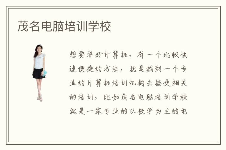 茂名电脑培训学校就目前的计算机专业以及相关产业链上的专业的发展情况展开具体研究,根据发展新形势调整好茂名计算机培训学校的培训重点难点项目,保证走在计算机发展道路的最前端。茂名计算机培训中心官方网站上有专门的栏目进行茂名电脑学校培训内容介绍,帮助想要进入到茂名计算机学校的学生了解更多关于学校的内容,包括培训方向、培训特色、培训优势课程等等。