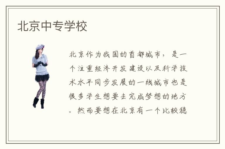 北京作为我国的首都城市,是一个注重经济开发建设以及科学技术水平同步发展的一线城市也是很多学生想要去完成梦想的地方。然而要想在北京有一个比较稳定的发展,必须要掌握的就是一门比较具有发展前景的专业技术。怎样才能在北京学好相关课程的专业技术呢?北京中专学校是一个比较好的选择,开设了丰富多样的专业课程,总体来说师资团队各方也是比较权威的。