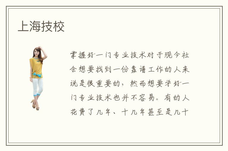 “大学生就业难”的情况已经很普遍了,越来越多的大学生在毕业之际会开始担心未来就业问题,以致于本就迷茫的同学们变得更加迷茫了。大学生普遍都是更注重理论知识学习的,在实践操作方面还是比较薄弱的,因此要想就业得到保障,提高自己的专业技术水平还得很有必要的。上海技校顾名思义就是为了培养技术人才而成立的,那么你知道这些上海技校究竟靠谱不靠谱呢?