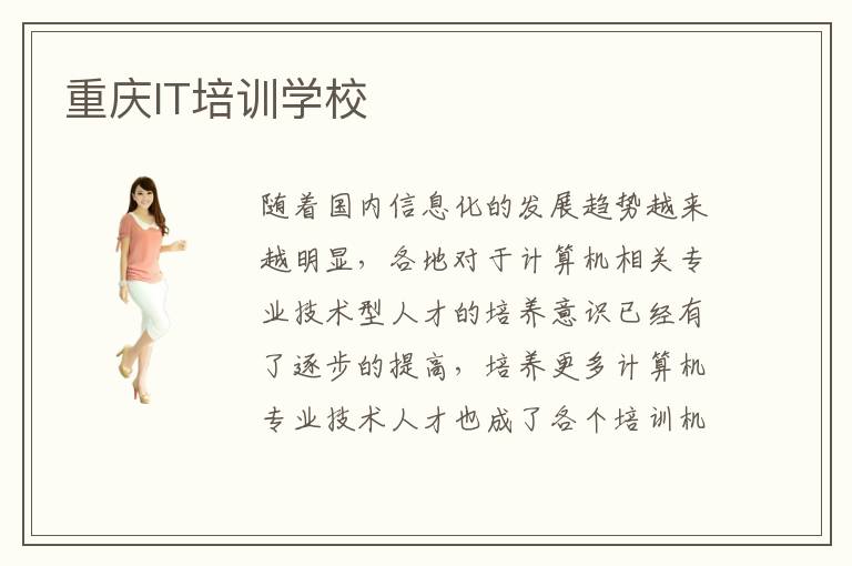 随着国内信息化的发展趋势越来越明显,各地对于计算机相关专业技术型人才的培养意识已经有了逐步的提高,培养更多计算机专业技术人才也成了各个培训机构的首要任务。重庆就开设了很多专业的计算机培训学校,在这些重庆IT培训学校中,同学们可以享受到更高水平的计算机教育质量,不断更新调整的专业培训课程也使得学员们对于未来的“就业、找工作”更有信心。