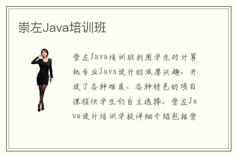 崇左Java培训班利用学生对计算机专业Java设计的浓厚兴趣,开设了各种难度、各种特色的项目课程供学生们自主选择。崇左Java设计培训学校详细介绍包括崇左Java培训学校的教学特色、创办意义、理论教学、实践辅导等等,内容丰富多彩,值得一看。崇左Java培训人才培养计划是国内的具有示范意义的一个计划,崇左Java培训班自从开班以来都有不少的生源。