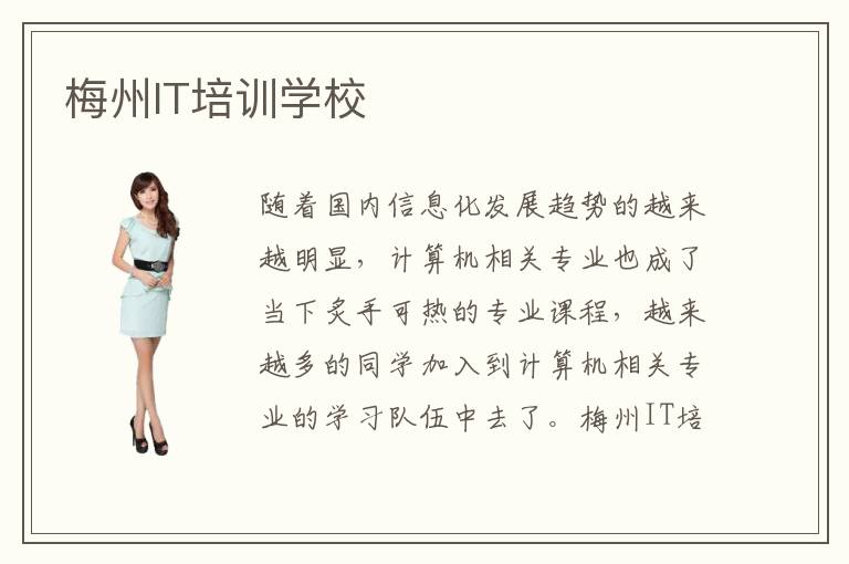 随着国内信息化发展趋势的越来越明显,计算机相关专业也成了当下炙手可热的专业课程,越来越多的同学加入到计算机相关专业的学习队伍中去了。梅州IT培训学校开设了各种各样丰富的计算机专业课程,给那些想要来梅州IT培训学校进行专业课程学习的同学提供了更多选择的机会,使得学员们可以充分考虑到自己的兴趣爱好,梅州IT培训学校也凭借自己良好的交互口碑成功的在IT教育行业中立足。