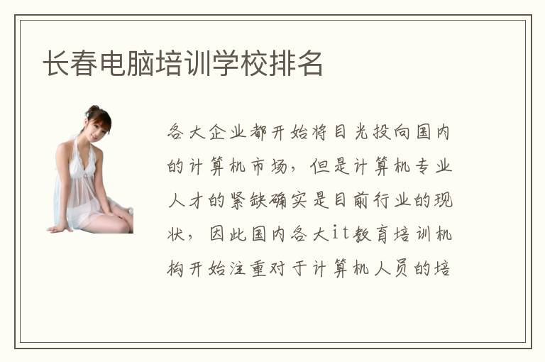 各大企业都开始将目光投向国内的计算机市场,但是计算机专业人才的紧缺确实是目前行业的现状,因此国内各大it教育培训机构开始注重对于计算机人员的培养,只有不断提高计算机专业技能,才能在计算机行业完成更高难度的项目制作。想要学好计算机专业技能,最有效、最快捷的方式就是通过专业的培训机构学习。那么,你知道长春电脑培训学校电脑培训学校排名是什么吗?