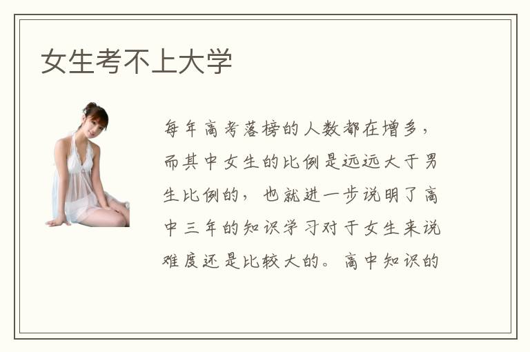 每年高考落榜的人数都在增多,而其中女生的比例是远远大于男生比例的,也就进一步说明了高中三年的知识学习对于女生来说难度还是比较大的。高中知识的学习是需要逻辑思维能力的,尤其是高中的理科,但是就逻辑思维能力而言男生是比较优秀的,这也就造成了很多女生在高考过程中失利的情况。那么,女生考不上大学应该怎么办呢?女生考不上大学可以去哪些平台进行这样学习呢?
