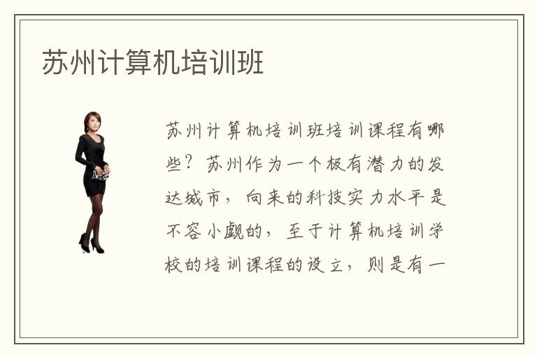 苏州计算机培训学校有专业的老师进行辅导培训,针对学生的特色,学校选择合适的专业老师、安排特色的专业课程,努力让学生学习到最具实用性质的知识,让自己的计算机水平得到质的飞跃。苏州计算机培训专业训练怎么样?苏州计算机培训专业训练培训效果令人满意吗?苏州电脑培训项目有哪些内容?苏州地区计算机IT培训学校的培训方向和培训方式有哪些?