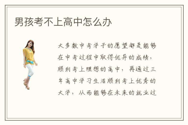 大多数中考学子的愿望都是能够在中考过程中取得优异的成绩,顺利考上理想的高中,再通过三年高中学习生活顺利考上优秀的大学,从而能够在未来的就业过程中更加顺利的找到满意工作。然而并不是所有人都可以考上高中的,那么,男孩考不上高中怎么办呢?男生在未来需要承担的责任是很重的,而男生的逻辑思维能力也是比较好的,因此可以选择一些计算机编程的热门专业进行学习。
