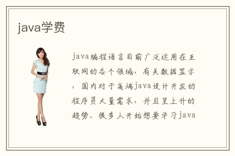 java编程语言目前广泛运用在互联网的各个领域,有关数据显示,国内对于高端java设计开发的程序员大量需求,并且呈上升的趋势。很多人开始想要学习java,java本身入学门槛低,学习对象也是男女不限,非常适合一些对互联网有着浓厚兴趣的以及未来想要从事互联网行业工作的人学习。正规的java培训机构学费一般是一万五左右,相比java学费,未来高薪就业还是很值得的。