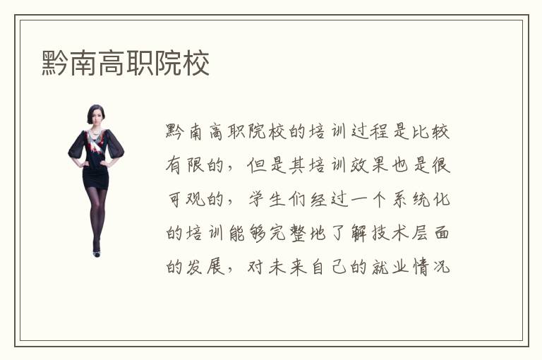 黔南高职学校的存在是比较有必要性的,因为黔南高职培训学校能够解决高考或者中考失败的学生们的学习问题。黔南高职培训机构有什么突出的教学特色嘛?黔南高职培训中心能够及时根据时代的变化调整寻找到新的教学培训方向。黔南高职学校主要培训方向是什么?黔南高职培训学校教学风格多元化,趋于现实,能够更深层次地了解学生们的学习需求。