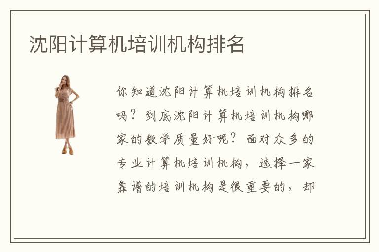 你知道沈阳计算机培训机构排名吗?到底沈阳计算机培训机构哪家的教学质量好呢?面对众多的专业计算机培训机构,选择一家靠谱的培训机构是很重要的,却又是不容易的。需要考虑各种方面的现实情况,进行不断的筛选、对比,首先要去了解这家培训机构的口碑好不好?师资力量、教学团队也是不容忽视的一个地方。当然,学员的就业保障问题也是很关键的一点。