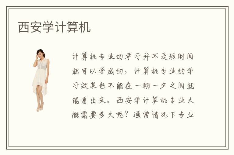 计算机专业的学习并不是短时间就可以学成的,计算机专业的学习效果也不能在一朝一夕之间就能看出来。西安学计算机专业大概需要多久呢?通常情况下专业的计算机培训机构会为学员安排,四个月左右的培训课程,通过专业课程的教学,高效教学模式的培训,努力让学员在四个月之内就可以完成计算机相关专业的学习,是一个学习计算机专业最快最好的办法。
