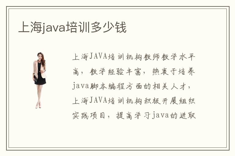上海JAVA培训机构教师教学水平高,教学经验丰富,热衷于培养java脚本编程方面的相关人才,上海JAVA培训机构积极开展组织实践项目,提高学习java的进取心和积极性。上海java培训机构需要多少钱?上海JAVA培训中心开销有多大?上海地区JAVA培训机构的学习课时费用是多少?上海设立了众多JAVA培训机构,帮助学生拓宽知识面,提升思维深度,灵活运用知识。